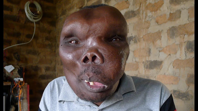 Su cuerpo es el de un hombre normal. Sin embargo, su cara parece una máscara. De esta forma vino Godfrey Baguma hace 47 años al mundo.