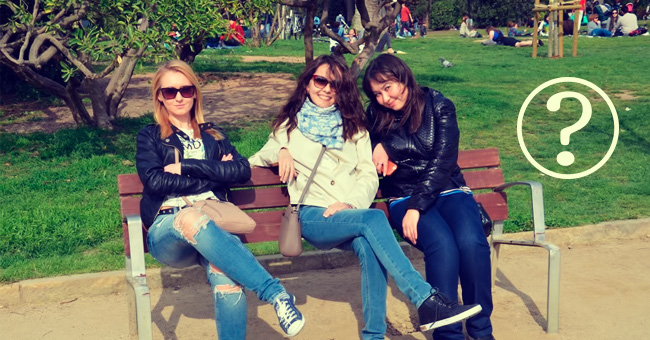 A primera vista, es la foto más común. Están sentadas tres chicas en un banco.