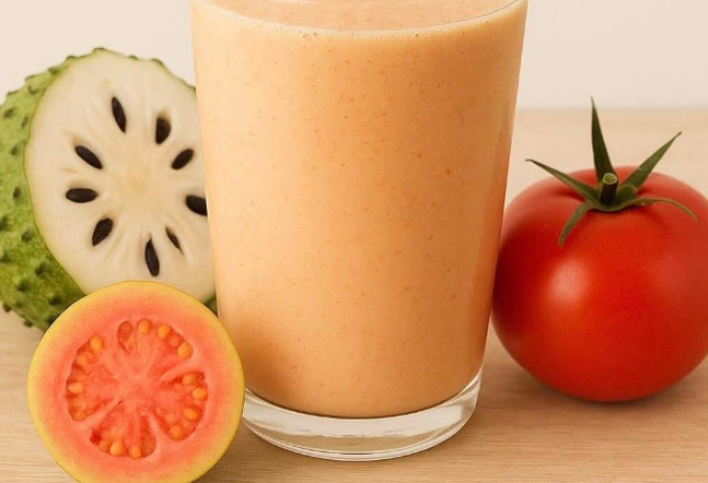 Batido de guanábana, guayaba y tomate especial para personas con diabetes.