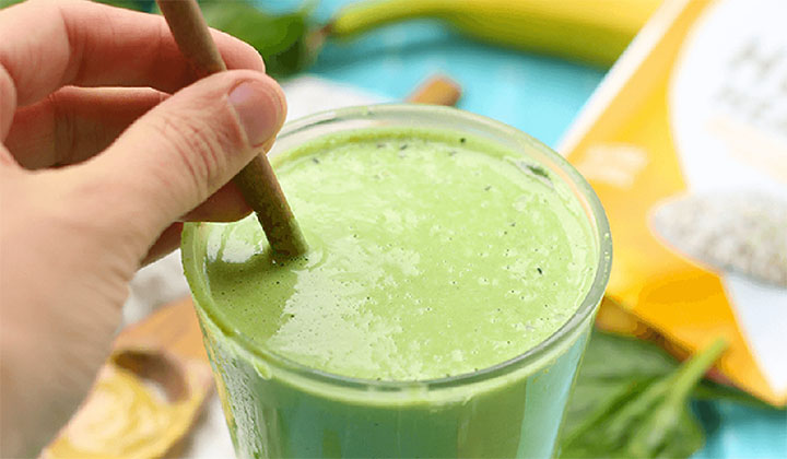 2 tazas de hojas verdes (yo uso espinacas, pero la col rizada, romana, rúcula, todo el trabajo)