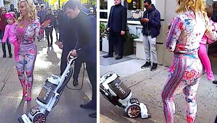 Junto a las 2, estaba su guardaespaldas y su asistente; este último, tenía que aspirar la calle de la gran manzana, antes que ella caminara por el pavimento.