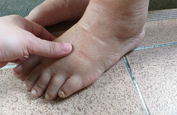 La acumulación de líquidos causa hinchazón, que puede notarse fácilmente por un aumento del volumen abdominal y del rostro, sin embargo, suele ocurrir principalmente en las piernas, tobillos y pies.