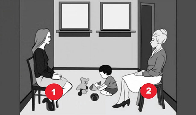 Esta es una ilustración donde puedes ver a dos mujeres sentadas con un niño jugando en el medio, la tarea de la prueba es que tú decidas cuál de las dos mujeres es la madre del niño, se basará en tu percepción o intuición , elige Después de uno de los dos, mira abajo para ver qué tipo de persona eres.