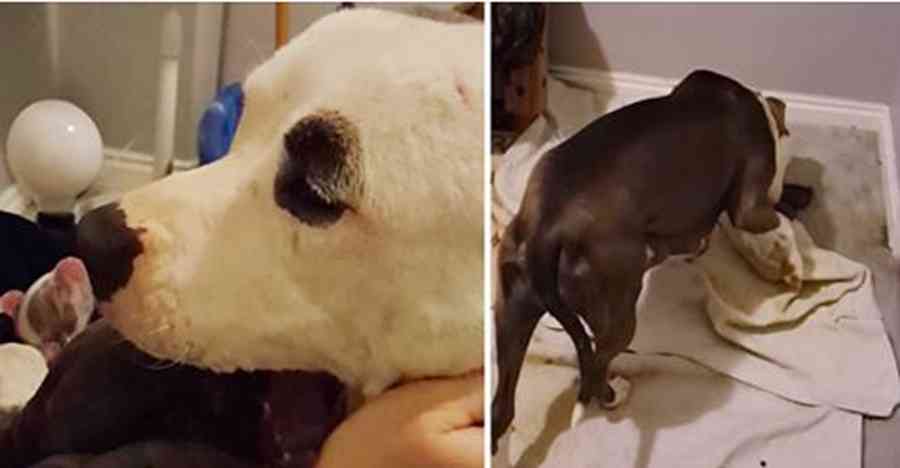 Pero cuando se encargó de esta pitbull embarazada no iba a ver un parto normal.