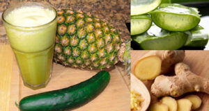 Batido natural de pepino, sábila, jengibre y piña para bajar de peso