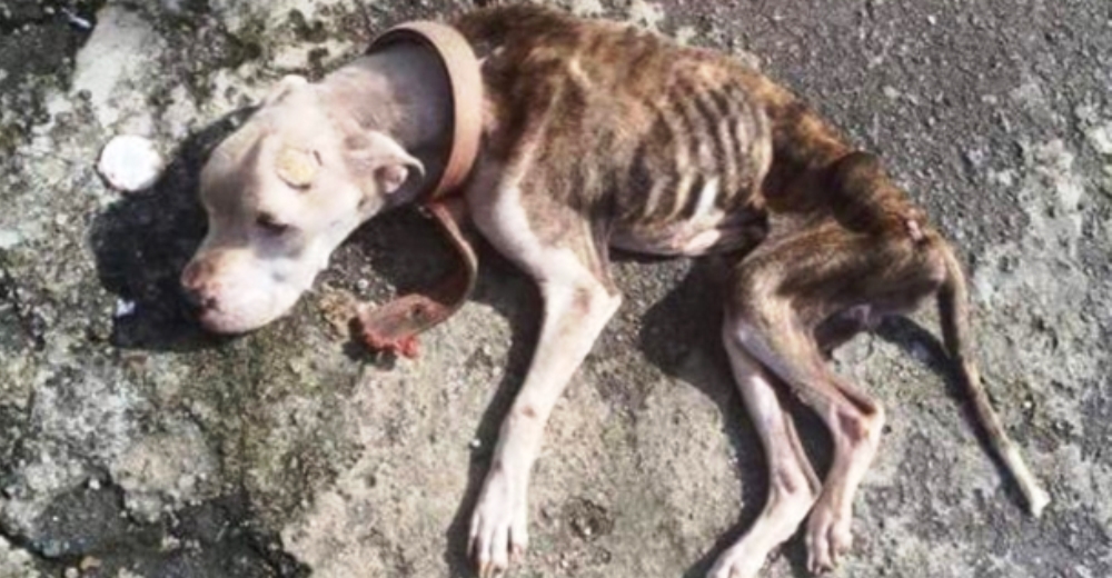 Recibió una llamada de parte de unos vecinos para alertarles sobre un perro pitbull encadenado, con desnutrición severa.