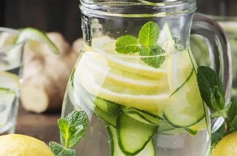 Cortar un pepino en rodajas o en trozos, triturar el puñado de hojas de menta y añadirlos en una jarra en un litro de agua y rodajas de limón. Dejarlo reposar toda la noche y tomar al día siguiente.
