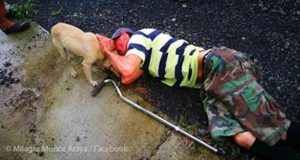 Una perrita corrió desesperada a buscar ayuda cuando su humano cayó...