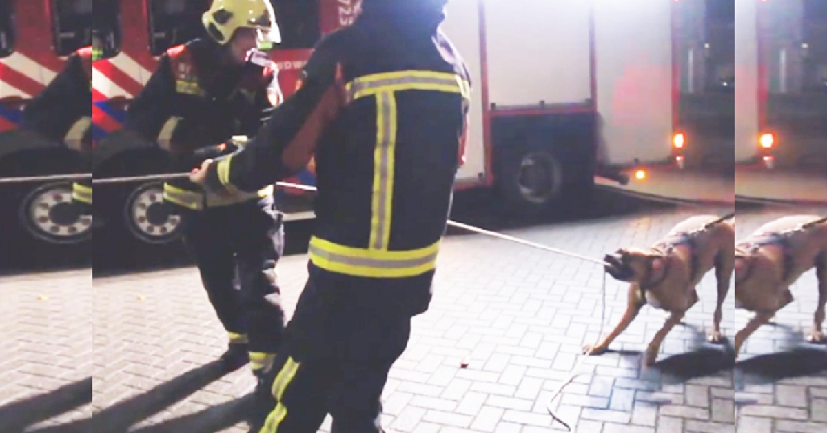 Este perrito ayudó tirando de la cuerda tan fuerte como pudo junto con los bomberos.