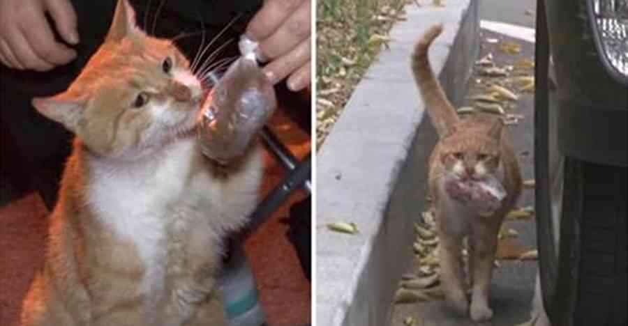 Su corazón se derritió cuando vio que la gata no comía lo que había dentro de la bolsa, si no que se lo llevaba a su pequeño gatito, y luego de que estuviera satisfecho, procedía a comer lo que quedara.