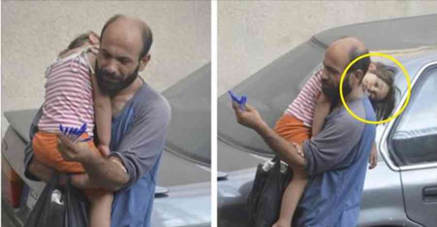 Se conmovió ante tal escena pues el hombre lucía afligido, descuidado, sus ojos reflejaban tristeza y mucha desesperación, además en sus brazos cargaba a su hija con profundo amor protegiéndola de cualquier peligro.