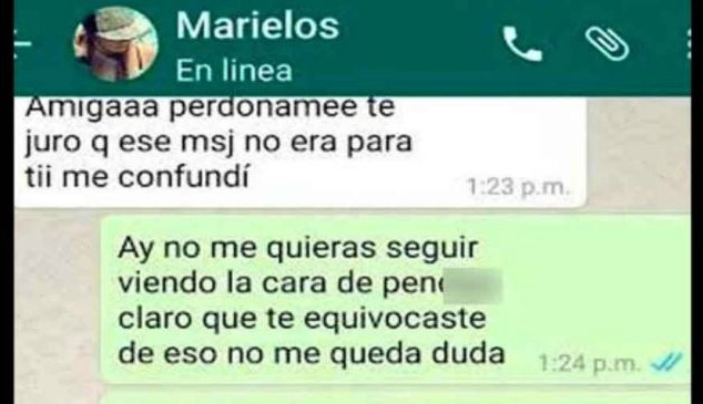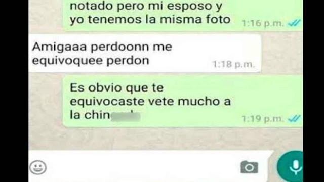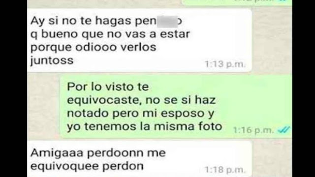 A continuación te presentamos los mensajitos que la mujer infiel le envió a su amiga al pensar que estaba chateando con su amante pues no se percató que los esposos tenían la misma foto de perfil.