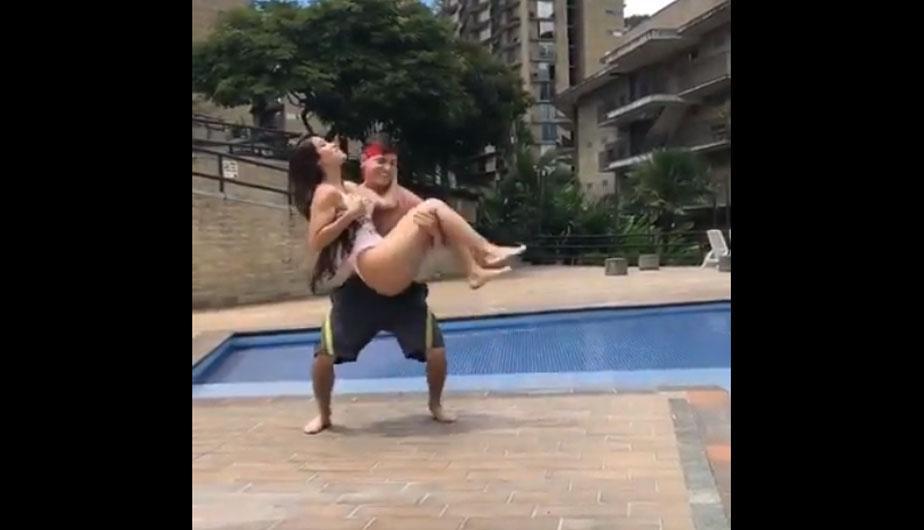 Cuando están cerca por llegar al lugar, en el video de Facebook, vemos al muchacho cargar a la mujer y arrojarla al agua. Luego de unos segundos ve que alguien distinto sale desde el fondo de la piscina.
