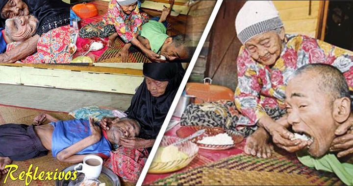 Una madre de Malasia, la señora Meliah Diah, de 101 años de edad y muy débil, no le impide cuidar a su hijo de 63 años de edad, Abdul Rahman Saud, el cual está discapacitado