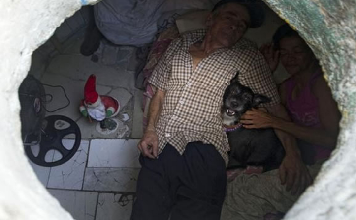 Prefieres tener cosas sencillas en la vida? Si eres de los que les gusta las cosas simples y no se preocupa mucho por lo material o las posesiones.Entonces es muy probable que disfrutes la historia sobre una pareja que ha estado viviendo en una alcantarilla durante 22 años.La pareja tiene una mascota que vive con ellos y poco a poco han ido renovado el espacio donde viven para adecuarlo a sus necesidades. Recientemente han agregado una cocina, un ventilador y un televisor a ese pequeño pero acogedor espacio.Aunque suene imposible vivir en un lugar como ese, esta pareja lo ha hecho y no tienen intenciones de irse. Es más, las fotografías que te enseñaremos a continuación demuestran lo mucho que están acostumbrados a ese lugar.