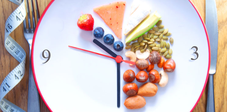 Como idea de ayuno diurno de 6 horas, que no se considera ayuno intermitente, deberíamos consumir un desayuno con proteína y grasa saludable a las 8 de la mañana y no ingerir alimentos sólidos hasta la comida a las 14 horas.