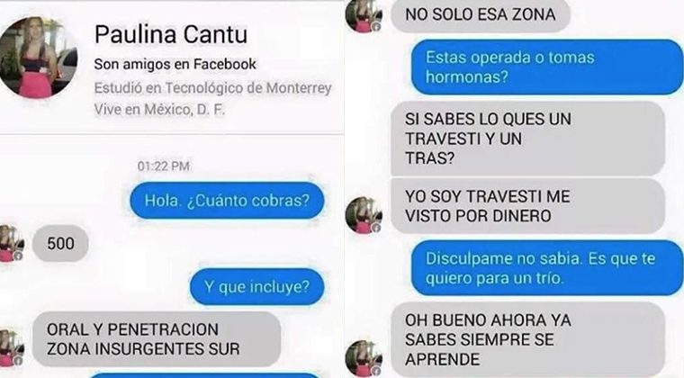 Típico: te conectas con una profesional y la invitas a un trío, hablas de detalles, y precios…