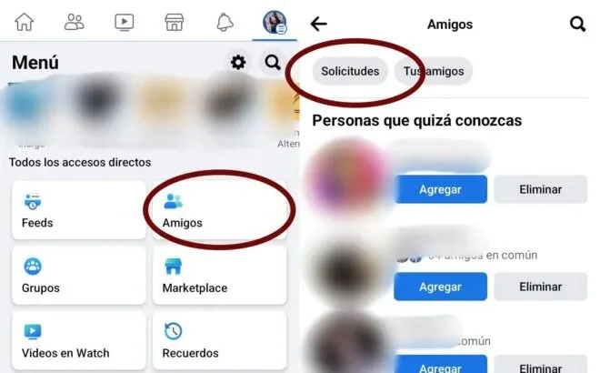 De esta manera, se podrá conocer a quienes se les ha enviado solicitud, se debe ingresar a la aplicación de Facebook desde el celular, una vez dentro, seleccionar los tres puntos en la parte superior derecha y seleccionar el recuadro que dice “Amigos”.
