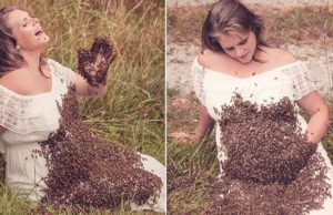 Madre embarazada posa con abejas en el estómago: 6 días antes...