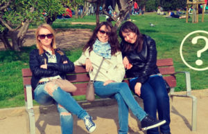 A primera vista, es la foto más común. Están sentadas tres chicas en un banco.