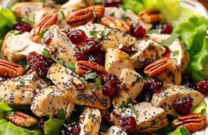 La ensalada de pollo con arándanos y nueces de pecán es un plato versátil y delicioso que ha ganado popularidad en la cocina contemporánea.