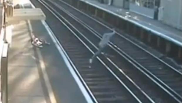 Intenta cruzar las vías y se cae justo antes de que pase un tren
