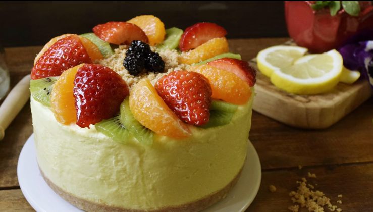Es una torta muy cremosa, esponjosa y con un ligero y agradable sabor a limón. Ese toque a limón, queda perfecto con el sabor de las frutas de la decoración.