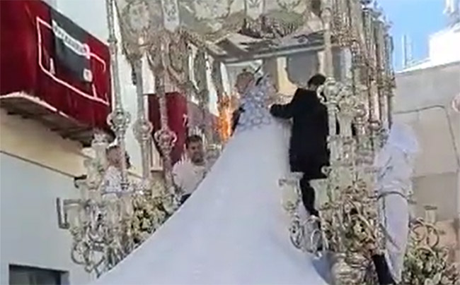 El pasado Domingo de Ramos, la localidad de Vélez-Málaga en la provincia de Málaga, quemó una estatua de la Virgen del Rocío en plena procesión.