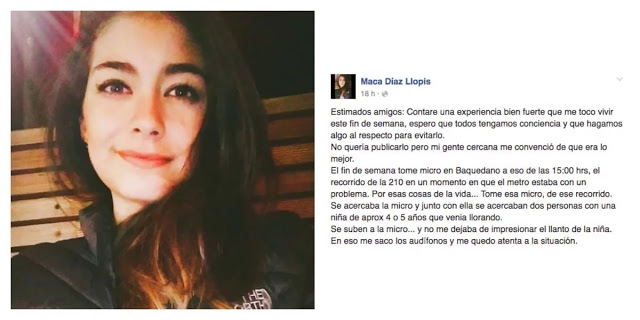 Pero ¿Qué pasa si viene con ella? Esto fue lo que le pasó a la joven Maca Díaz, tomó el transporte alrededor de las 3 de la tarde, al subir.