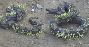 Vídeo: serpiente pitón se come un puercoespín y se arrepiente al...