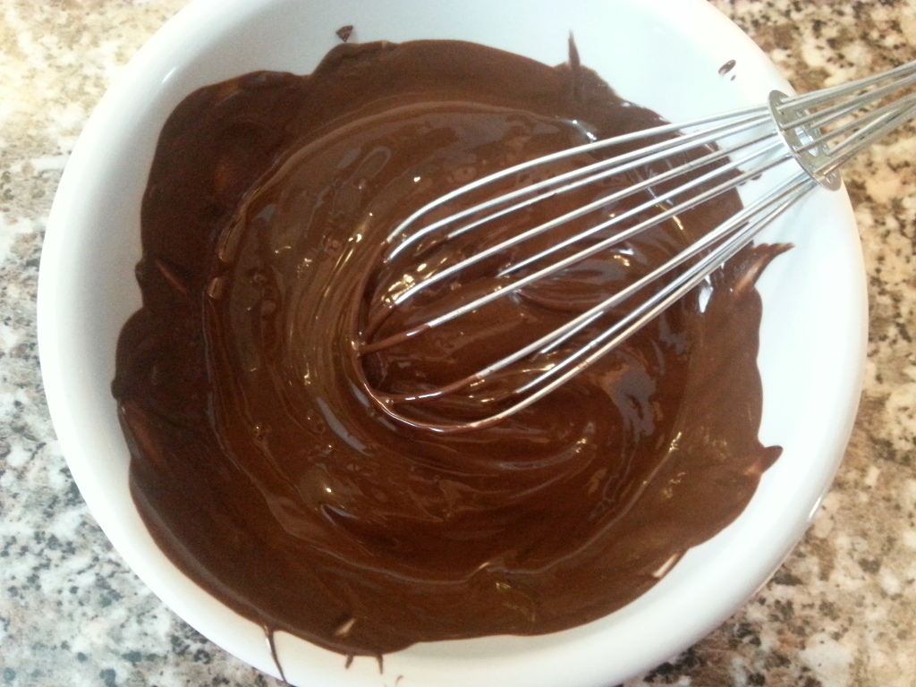 Derretir el chocolate en el microondas poco a poco, con cuidado de que no se queme junto con la mantequilla (el tiempo va a depender de la potencia de tu microondas).