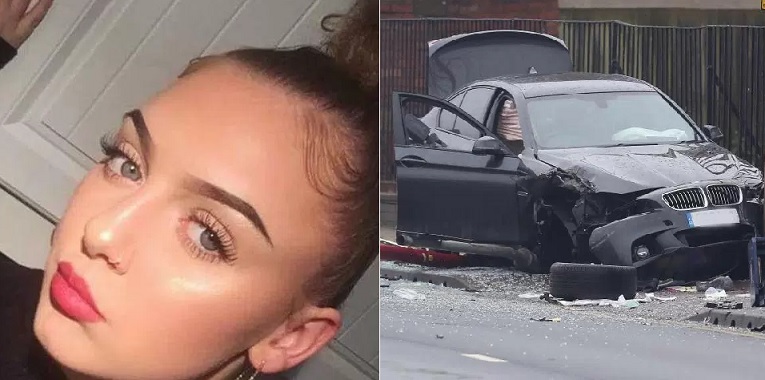 Una SCHOOLGIRL murió después de que un BMW se estrelló contra una parada de autobús en un horror que dejó a otra mujer luchando por su vida.