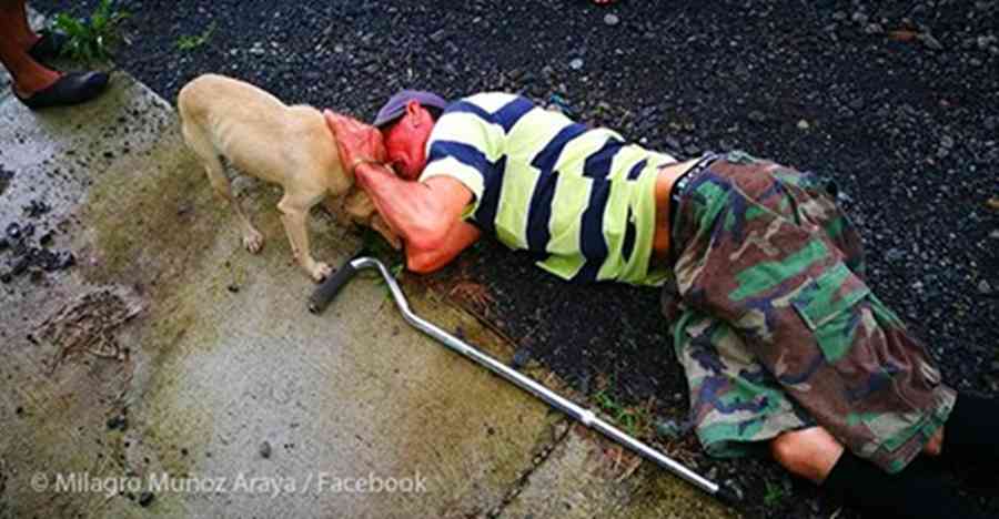 La pareja entendió instantáneamente que el hombre necesitaba ayuda inmediata y el esposo pidió una ambulancia. En cuanto al perro (era una hembra), no dejó a su amo, incluso cuando la lluvia comenzó a caer.