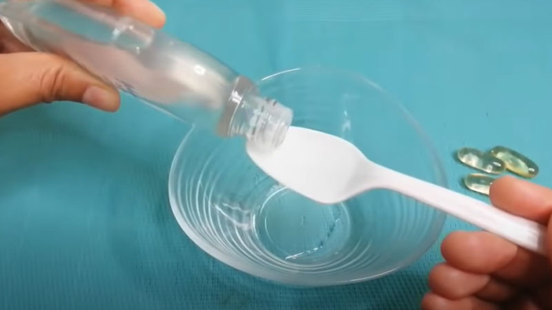 En un recipiente desinfectado completamente limpio y seco, debes incorporar las cucharadas de aceite de bebé junto con el contenido de las 3 cápsulas de vitamina E, tras esto mezcla muy bien hasta integrar.